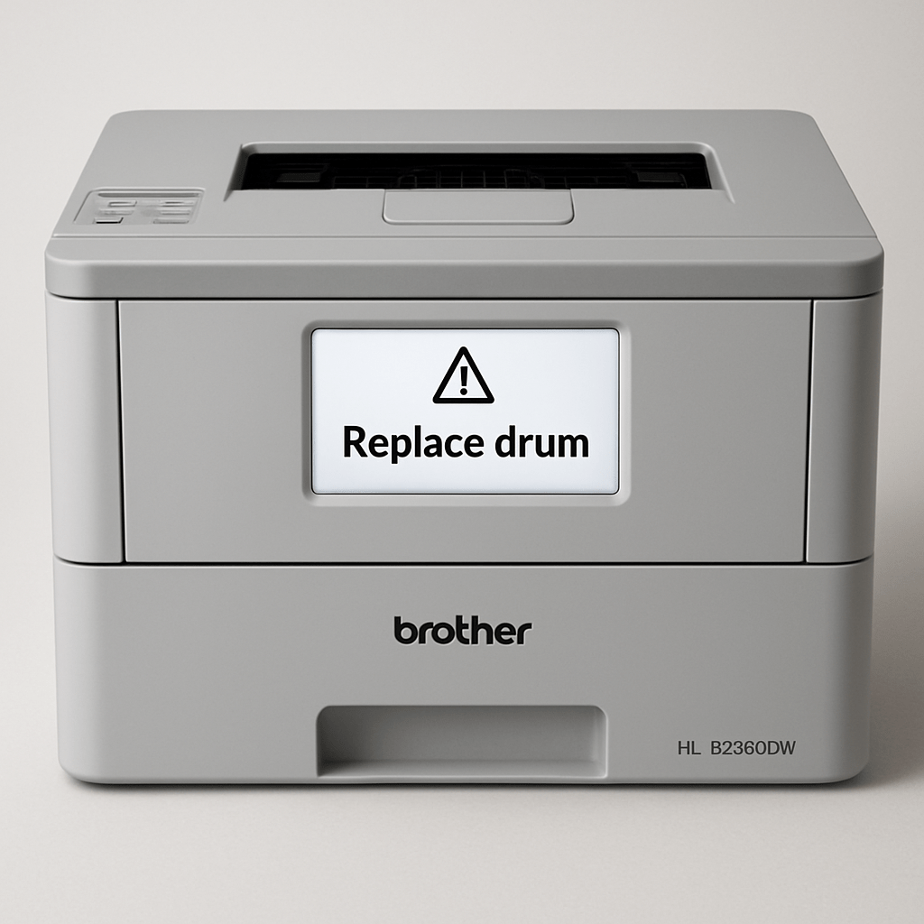 Nếu máy báo lỗi “Drum Near End” hoặc “Replace Drum”, đây là dấu hiệu cụm trống sắp hết tuổi thọ. Mặc dù máy vẫn có thể in được một thời gian, chất lượng sẽ giảm dần. Nên chuẩn bị cụm trống thay thế để tránh gián đoạn công việc.