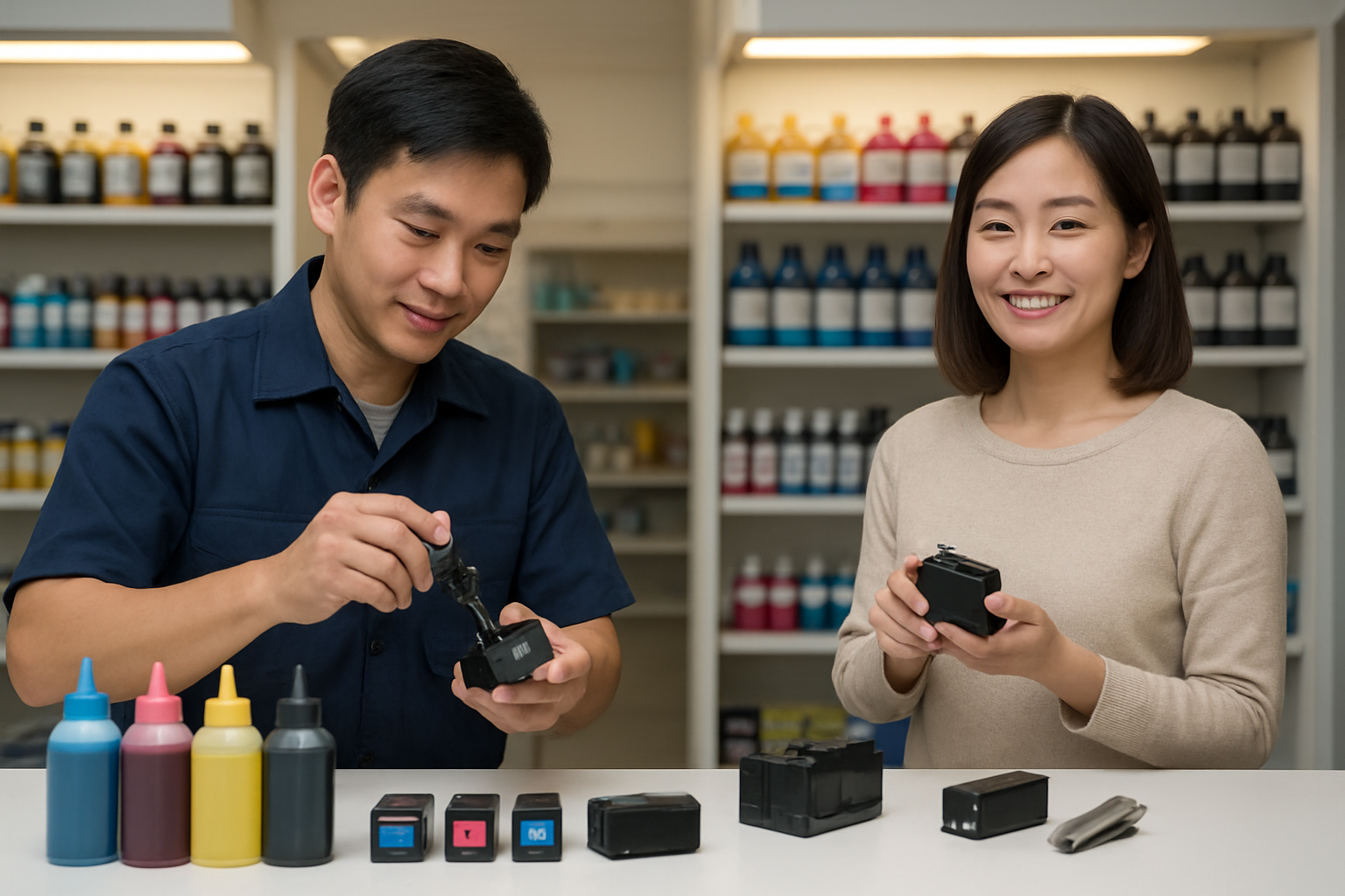 Khi tìm cửa hàng đổ mực máy in tại đường Hoàng Quốc Việt. Bạn cần xem xét một số dấu hiệu quan trọng để đánh giá độ tin cậy. Trước tiên, hãy kiểm tra thời gian hoạt động của cửa hàng – những địa chỉ có kinh nghiệm 3-5 năm thường có quy trình làm việc ổn định và hiểu rõ đặc tính của từng loại máy in.