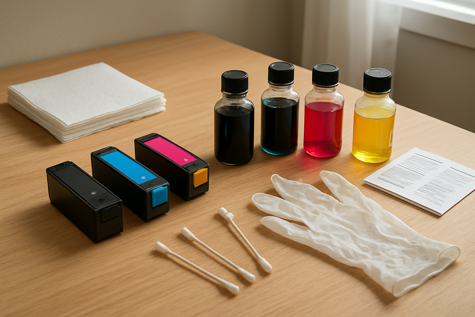 Quá trình vệ sinh phải được thực hiện nhẹ nhàng bằng khăn mềm không xơ vải, tránh gây tổn thương cho các kim phun nhỏ. Sau khi vệ sinh, cần để khô hoàn toàn trước khi lắp cartridge mới.