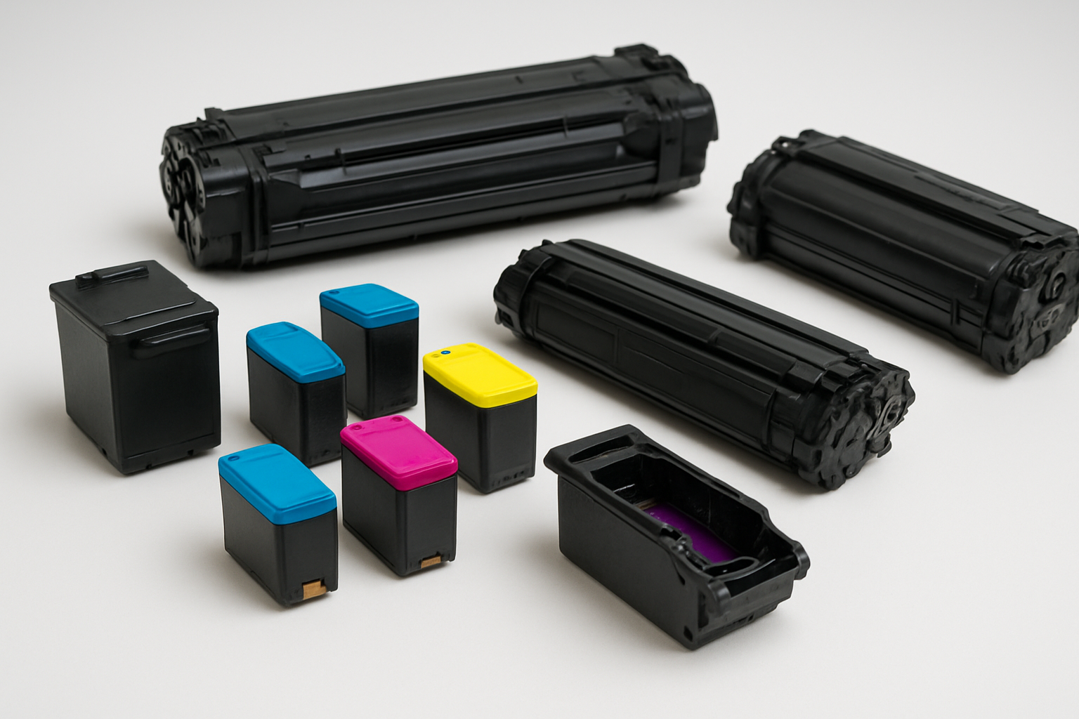 Cartridge màu có dung lượng nhỏ hơn laser. Thường in được 200-500 trang tùy mức độ phủ màu. Máy in phun Canon PIXMA, HP DeskJet, Epson L-series đều yêu cầu loại mực riêng với công thức hóa học khác nhau.