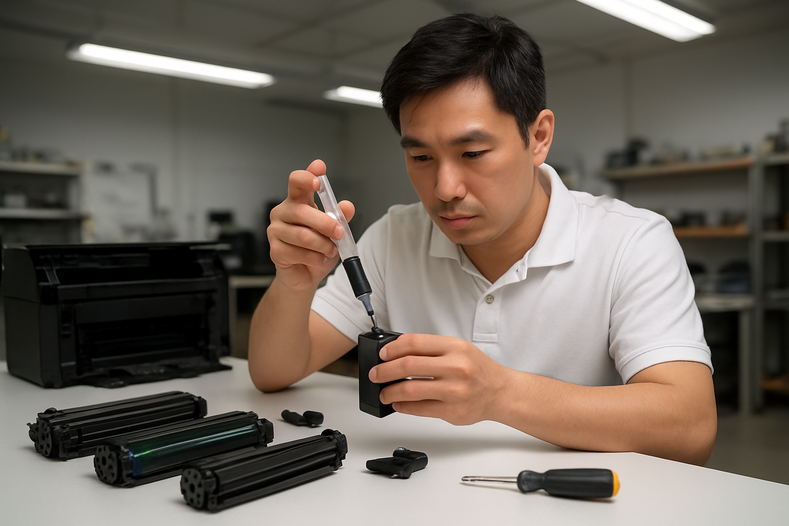 Việc tháo cartridge cũ đòi hỏi kỹ thuật và kinh nghiệm để tránh làm hỏng cơ chế bên trong máy in. Các cửa hàng mực in Ô Chợ Dừa Hà Nội chuyên nghiệp sẽ thực hiện quy trình chuẩn để đảm bảo an toàn cho thiết bị.